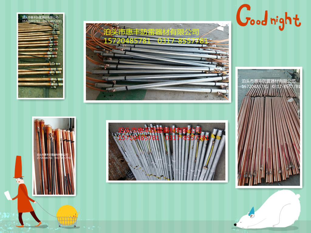 好消息!好消息! 小编忍不住告诉您一个好消息, 上午我厂经理经过开会研究表示,为减少库存积压,现我厂离子接地极所有现货的离子接地极全部降价出售,小编为您打探来的内部消息,降价出售的离子接地极型号有Φ50*1500(材质:铜包钢与紫铜),Φ54*2000(材质:不锈钢),Φ57*2500(镀锌钢与不锈钢),Φ60*3000(材质:黄铜),Φ57*6000(材质:黄铜,铜层厚度0.254mm),变的是价格,不变的是质量,以上所有型号的离子接地极真真的就是惊爆价,不要再犹豫,这一次机会就不知道还要等到什么时候了!即使您不买也可以来看看,顺便可以帮我们做个宣传,小编真的是不胜感激呢!